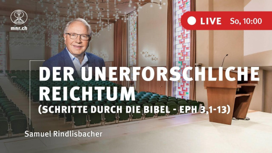 LIVESTREAM Gottesdienst Zionshalle Endete Zum Kalender hinzufügen Spende für Kollekte vom Gottesdienst Anstehende Livestreams Live Bibel/Gebetsstunde: Markus 6,7-13 | Philipp Ottenburg Geplant am Do., 26. März 2026, 20:00 3 Tage 12h 20m Mehr Live Gottesdienst: Der unerforschliche Reichtum (Eph 3,1-13) | Samuel Rindlisbacher Geplant am So., 29. März 2026, 10:00 6 Tage 2h 20m Mehr Live LIVESTREAM Osterkonferenz 2026 «Gott hat die Kontrolle»: Samuel Rindlisbacher Geplant am Do., 2. April 2026, 20:00 10 Tage 12h 20m Mehr Live LIVESTREAM Osterkonferenz 2026 «Gott hat die Kontrolle»: Norbert Lieth Geplant am Fr., 3. April 2026, 10:00 11 Tage 2h 20m Mehr Live LIVESTREAM Osterkonferenz 2026 «Gott hat die Kontrolle»: Nathanael Winkler Geplant am Fr., 3. April 2026, 14:00 11 Tage 6h 20m Mehr Live LIVESTREAM Osterkonferenz 2026 «Gott hat die Kontrolle»: Philipp Ottenburg Geplant am Fr., 3. April 2026, 17:00 11 Tage 9h 20m Mehr Live LIVESTREAM Osterkonferenz 2026 «Gott hat die Kontrolle» Geplant am Sa., 4. April 2026, 19:00 12 Tage 11h 20m Mehr Live LIVESTREAM Osterkonferenz 2026 «Gott hat die Kontrolle»: Norbert Lieth Geplant am So., 5. April 2026, 10:00 13 Tage 2h 20m Mehr Live LIVESTREAM Osterkonferenz 2026 «Gott hat die Kontrolle»: Philipp Ottenburg Geplant am So., 5. April 2026, 14:00 13 Tage 6h 20m Mehr Live LIVESTREAM Osterkonferenz 2026 «Gott hat die Kontrolle»: Nathanael Winkler Geplant am Mo., 6. April 2026, 10:00 14 Tage 2h 20m Mehr Live LIVESTREAM Bibel/Gebetsstunde: Markus 6,14-29 | Reinhold Federolf Geplant am Do., 9. April 2026, 20:00 17 Tage 12h 20m Mehr Live LIVESTREAM Gottesdienst: Erich Maag Geplant am So., 12. April 2026, 10:00 20 Tage 2h 20m Mehr